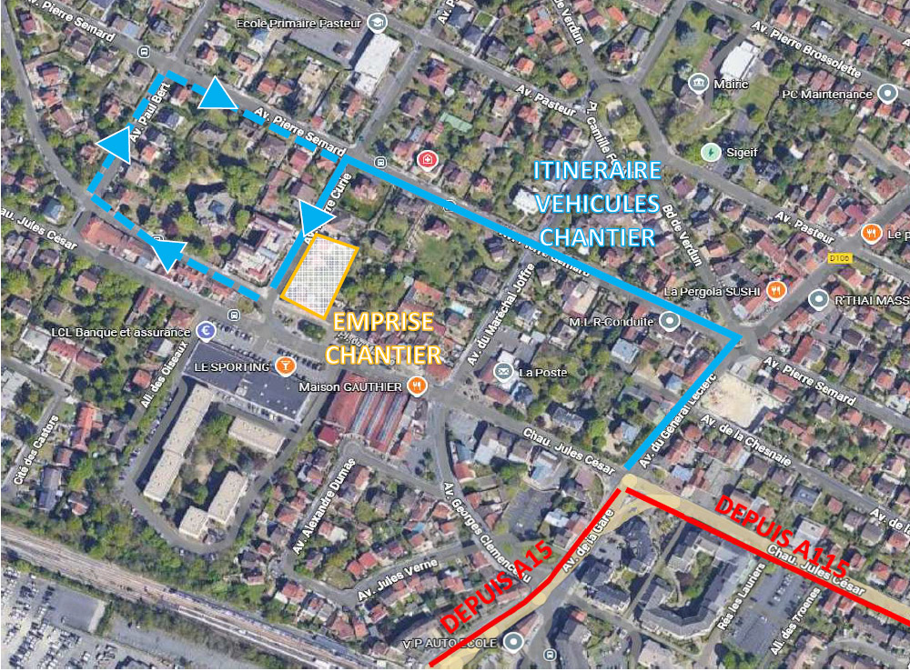 Un itinéraire spécifique a été transmis à la société Promogim afin de canaliser les flux liés au chantier. Le parcours des véhicules s’effectuera selon le circuit suivant :