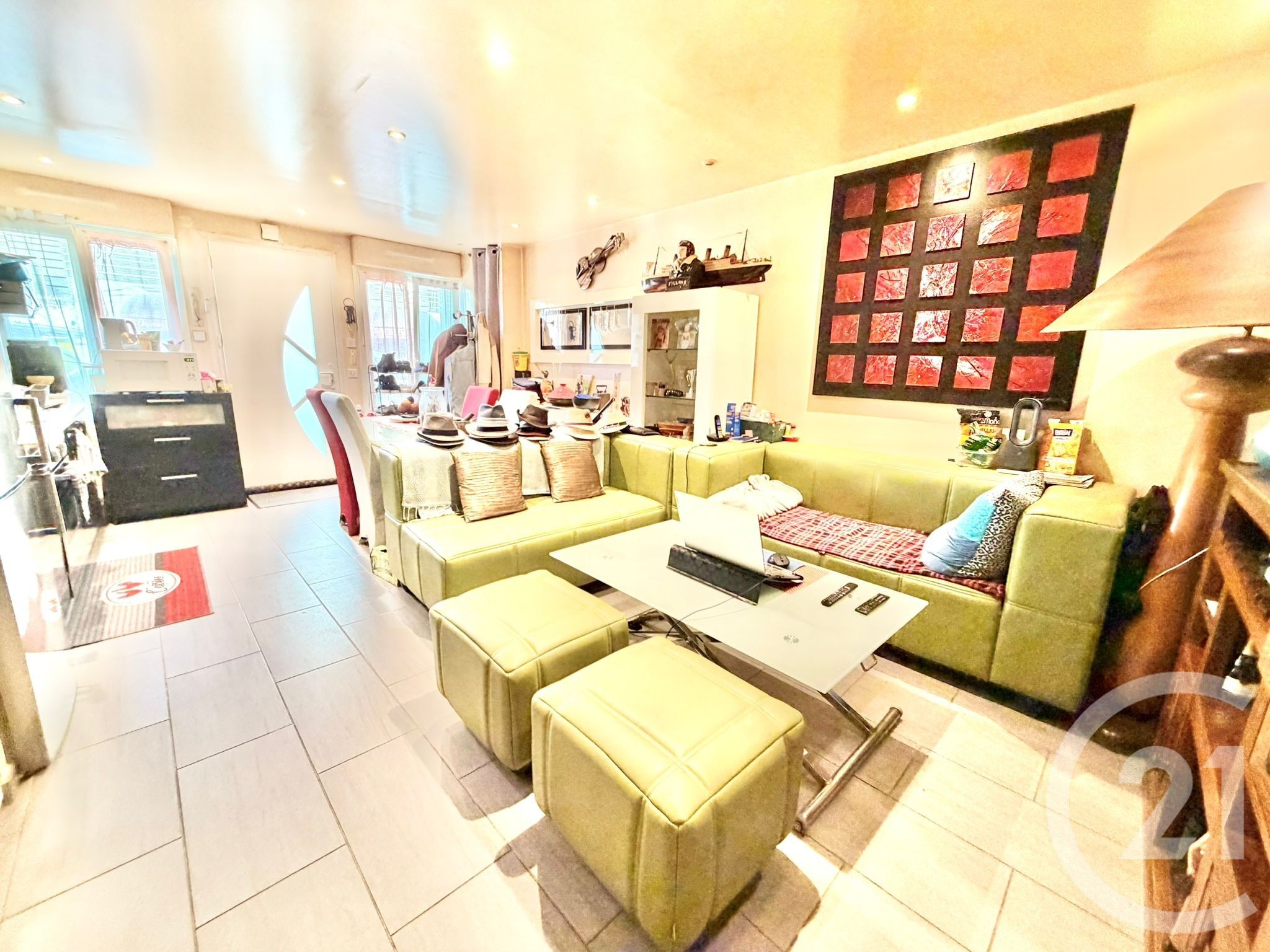 Au rez-de-chaussée, vous profiterez d'un séjour lumineux ainsi que d'une cuisine ouverte, aménagée et entièrement équipée.